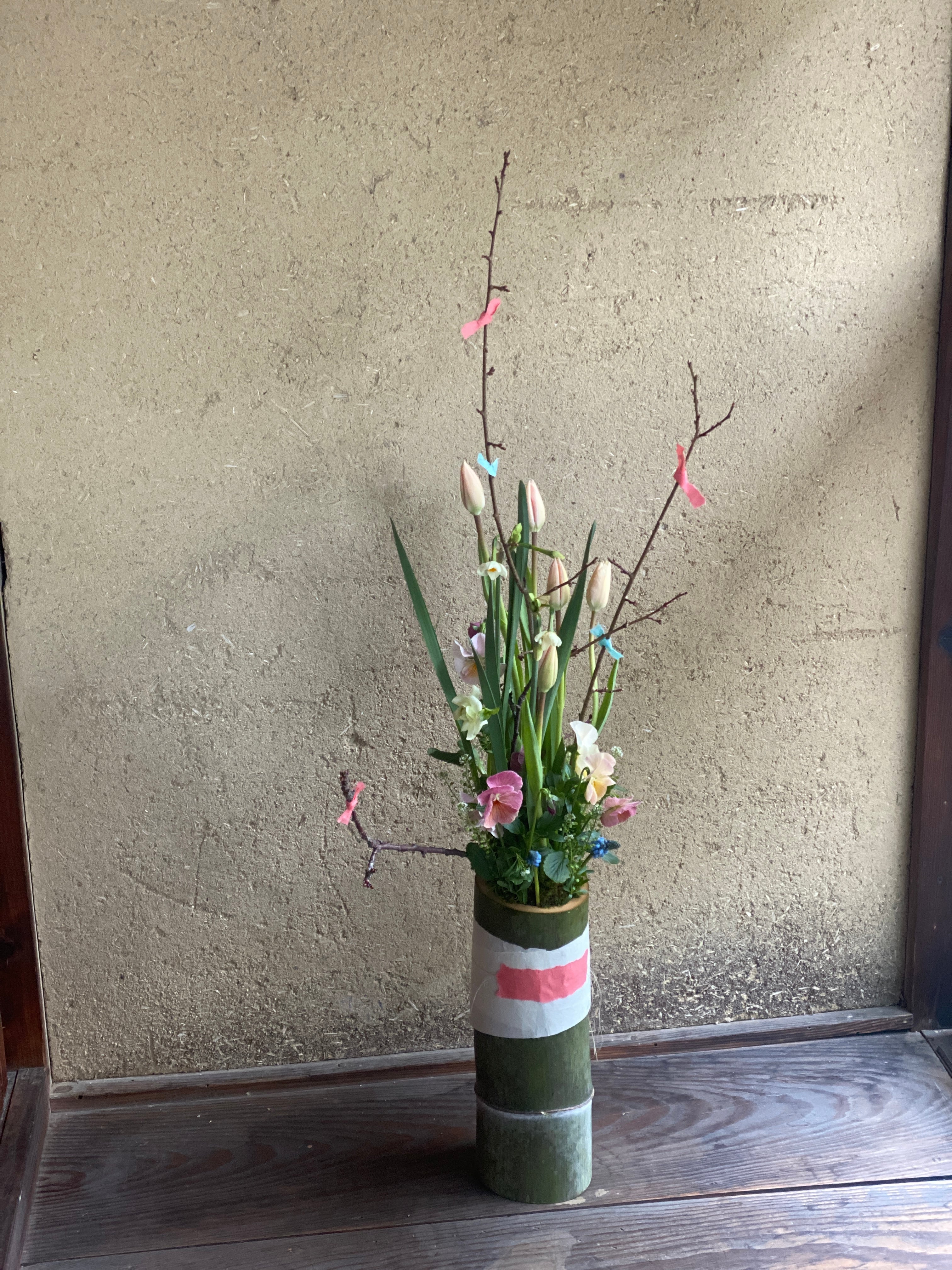また、日本に偏りすぎず、お花とともに最大限の可愛いさを、醸し出す、そんな竹筒となっており、お祝いや、贈り物にぴったりです