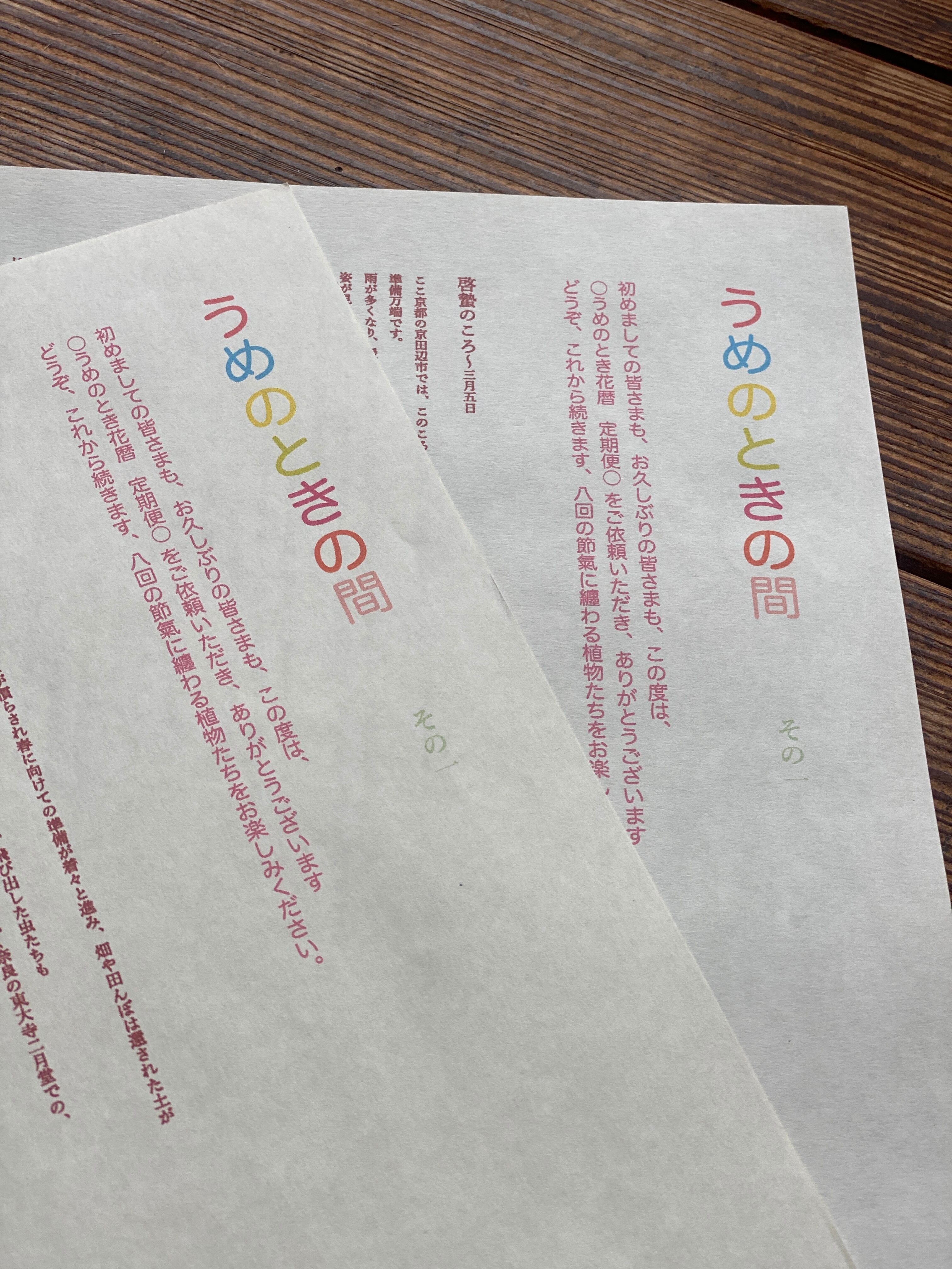 春の頃から夏の前までとしてお届けしておりました、二十四節氣 花暦定期便